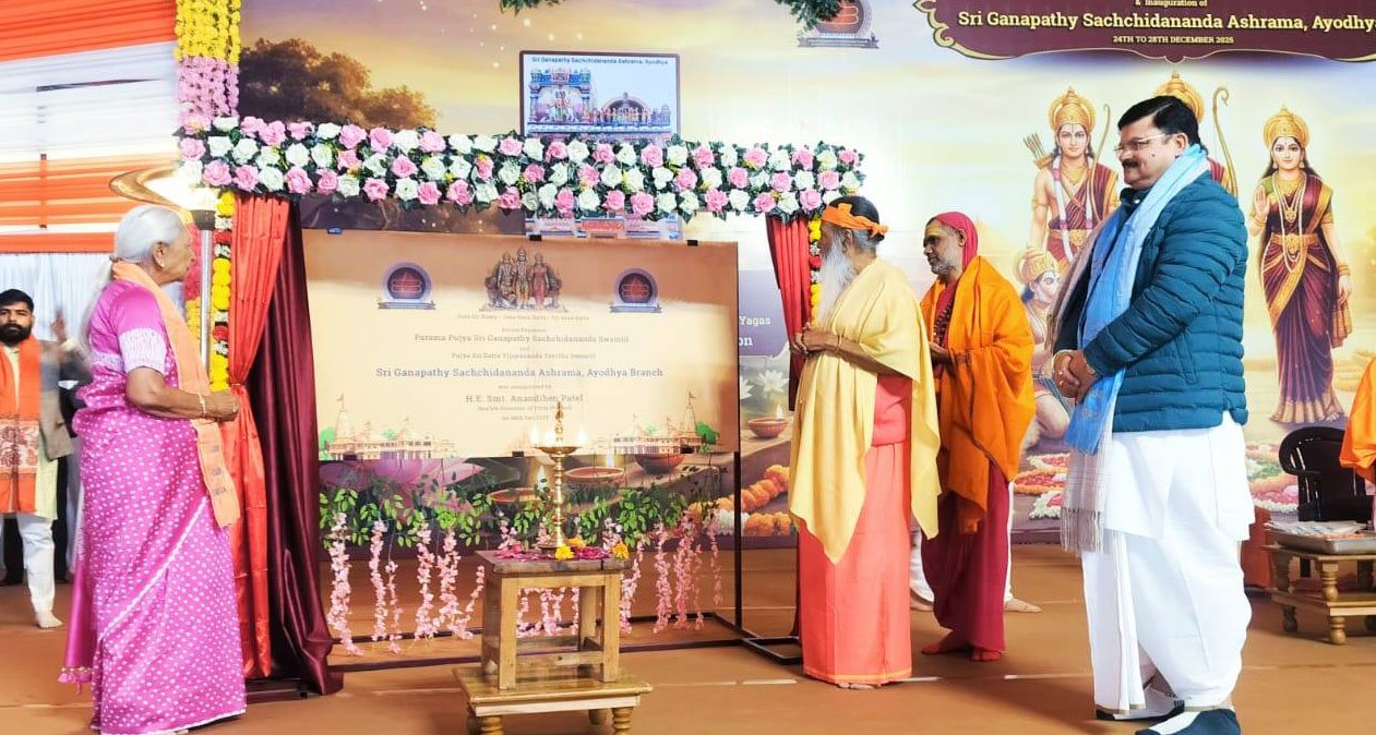 अयोध्या। प्रदेश की राज्यपाल आनंदीबेन पटेल ने श्री गणपति सच्चिदानन्द आश्रम की 104वीं शाखा का वैदिक मंत्रोच्चार के मध्य यज्ञ में आहुति देकर विधिवत शुभारम्भ किया तथा तत्पश्चात मंचासीन रामदरबार की प्रतिमाओं का श्रद्धापूर्वक दर्शन-पूजन किया। इस अवसर पर राज्यपाल ने अपने संबोधन में कहा कि स्वामी गणपति सच्चिदानंद स्वामी द्वारा स्थापित यह आध्यात्मिक एवं सामाजिक पीठ भगवान दत्तात्रेय के दिव्य सिद्धांतों पर आधारित होकर आध्यात्मिक साधना के साथ-साथ मानव सेवा, करुणा, संवेदना एवं सामाजिक उत्तरदायित्व का सशक्त केंद्र है।