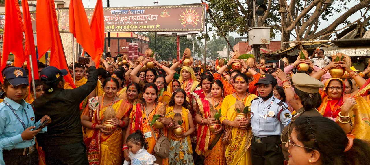 -551 कलशों की भव्य यात्रा से अयोध्या में जीवंत हुई रामायण परंपरा, पीतांबरी परिधान में 551 महिलाएं कलश लेकर बनीं आस्था की ध्वजवाहक
