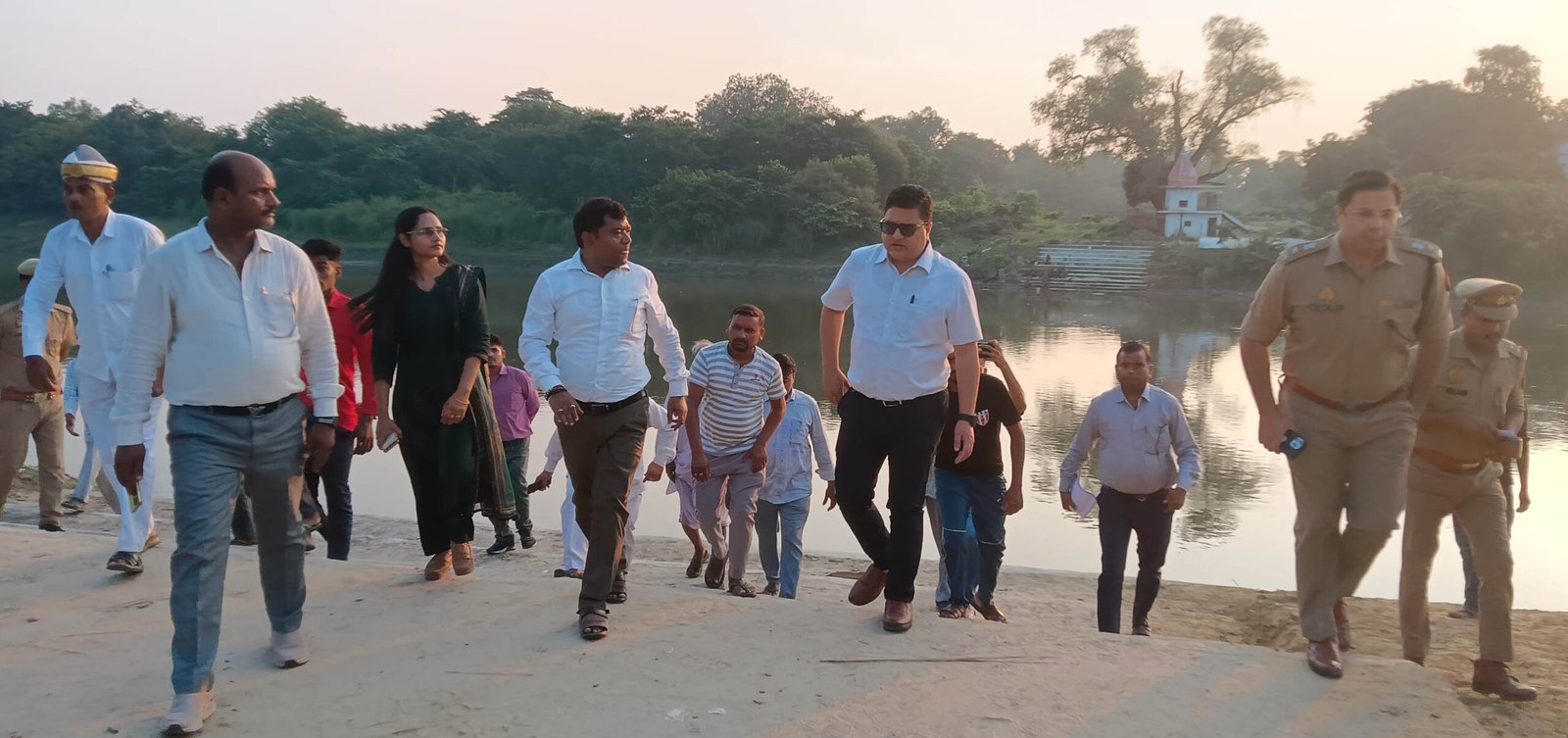 अयोध्या। जिलाधिकारी निखिल टीकाराम फुंडे व वरिष्ठ पुलिस अधीक्षक डॉक्टर गौरव ग्रोवर के साथ आज विसर्जन स्थल मां कामाख्या घाट व रीछ घाट का स्थलीय निरीक्षण किया।