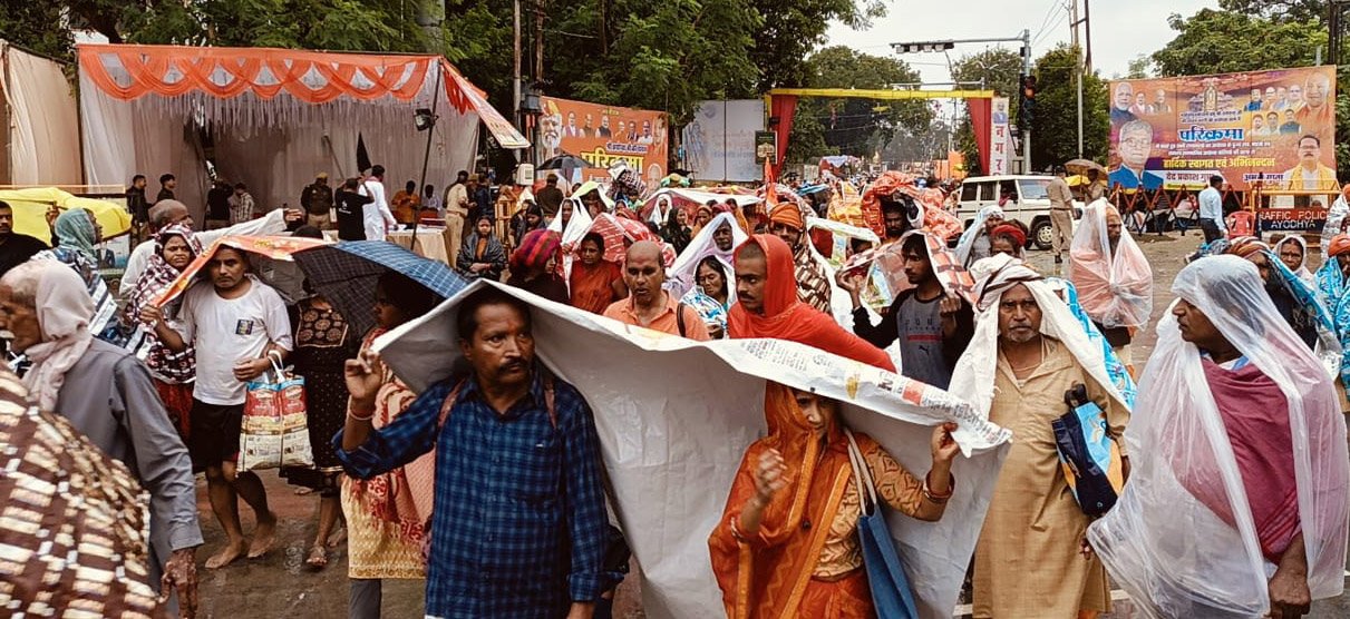 अयोध्या।अयोध्या में भारी बारिश के बीच श्रद्धालुओं ने राम का नाम लेते हुए 14 कोसी परिक्रमा को पूरा किया। बारिश के दौरान भक्तों का यही कहना था कि प्रभु राम परीक्षा ले रहे हैं। इसमें सभी भक्त शत प्रतिशत पास हो गए। तकरीबन 25 लाख से अधिक श्रद्धालुओं के परिक्रमा करने का अनुमान लगाया गया है। परिक्रमा के दौरान सुरक्षा व्यवस्था के पुख्ता इंतजाम रहे। परिक्रमा मार्गों पर बड़ी संख्या में पुरुष व महिला पुलिस कर्मियों के साथ सादी वर्दी में भी सुरक्षा कर्मियों की तैनाती की गई है। इसके साथ ही ड्रोन से पूरे मेले की निगरानी की जा रही है। परिक्रमा एटीएस की निगरानी में शुरू होगी खास भीड़ भाड़ वाले स्थान परिक्रमा पथ पर सुरक्षा के इंतजाम हैं। मुख्यमंत्री योगी आदित्यनाथ के निर्देश के बाद प्रशासनिक अधिकारी मार्गों पर दिन भर भ्रमण करते दिखे।