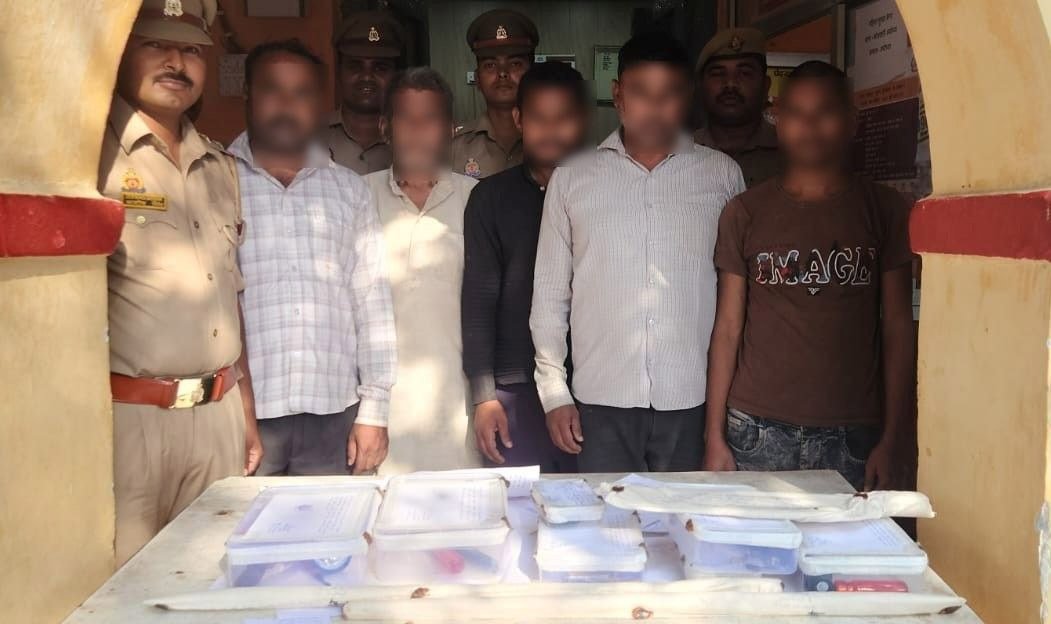 प्रभारी निरीक्षक कोतवाली अयोध्या पंकज सिंह ने बताया कि रायगंज चौकी प्रभारी शेखऱ नाथ सिंह की पुलिस टीम के साथ मौनीबाबा अन्डर पास के बगल मदरहिया जाने वाले कच्चे रास्ते से गोंडा जिले के धानेपुर थाना क्षेत्र स्थित मूड़ाडीहा निवासी महेश कुमार वर्मा व सोहास करमोहनी निवासी गोमती आजाद,मनकापुर कोतवाली के ग्राम नकछेद पुरवा जिगना बाजार निवासी श्यामपाल आजाद व लवली आजाद तथा हरदोई जनपद के शहर कोतवाली स्थित सुरजीपुर कालोनी निवासी भन्नू को गिरफ्तार किया है।