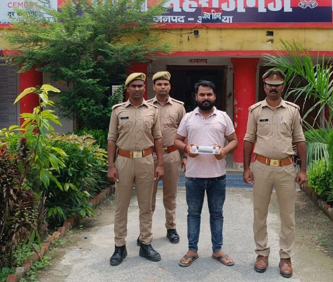 अयोध्या। जनपद की महराजगंज थाना पुलिस ने गैगेस्टर एक्ट में वांछित एक आरोपी को तमंचा-कारतूस के साथ गिरफ्तार किया है। पुलिस ने पकड़े गए आरोपी को 20 हजार रूपये का ईनामी बताया है। गुरुवार को सीओ सदर शैलेन्द्र गौतम ने बताया कि एसएसपी के निर्देश पर अपराध और अपराधियों पर नियंत्रण को लेकर चलाये जा रहे अभियान के तहत महराजगंज थाना पुलिस ने गैगेस्टर एक्ट में वांछित आरोपी 25 वर्षीय कुबेर सिंह उर्फ अभ्युदय सिंह उर्फ दादा निवासी पूराबाजार थाना महराजगंज को आज चेकिंग के दौरान भोर में बनगवां नहर पुलिया के पास से तमंचा-कारतूस के साथ गिरफ्तार किया है।