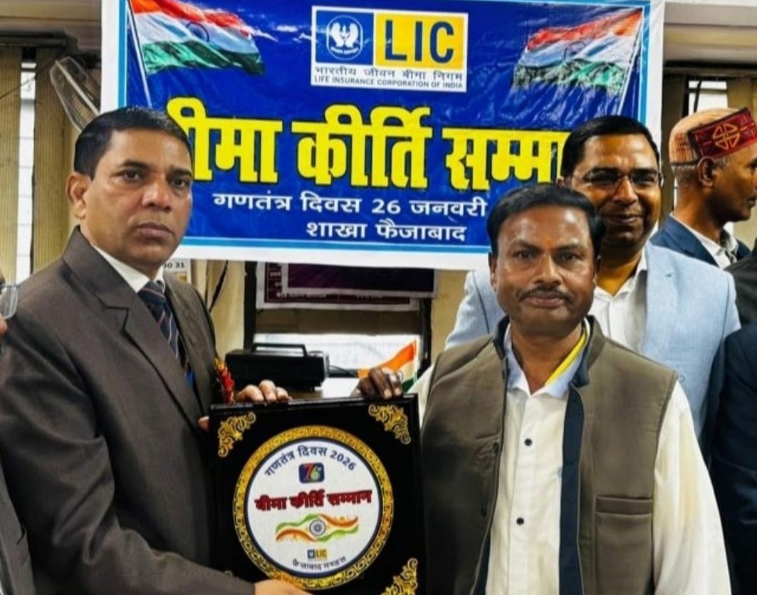 अयोध्या। मर्यादा पुरुषोत्तम भगवान श्री राम के पवन धाम नगरी अयोध्या जनपद के फैजाबाद शाखा मे भारतीय जीवन बीमा निगम द्वारा सम्मान समारोह का आयोजन हुआभारतीय जीवन बीमा निगम के मुख्य शाखा प्रबंधक बबलू मीणा एवं सहायक शाखा प्रबंधक विजय प्रकाश मिश्रा एवं सहायक शाखा प्रबंधक संतोष जी ने गणतंत्र दिवस पर उत्कृष्ट कार्य करने वाले बीमा सलाहकारों को विशेष सम्मान प्रदान किया है जिसमें मुख्य शाखा प्रबंधक ने बंदना हर्ष रघुनाथ अंतरराष्ट्रीय जीव कल्याण परिषद के अध्यक्ष पत्रकार एवं बीमा सलाहकार अजय कुमार मांझी को बीमा कीर्ति सम्मान सम्मान से सम्मानित किया है