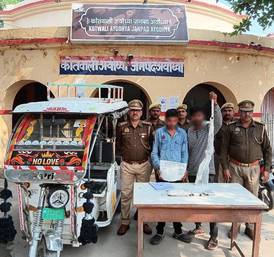 अयोध्या। अयोध्या कोतवाली पुलिस ने एक ई रिक्शा चालक और उसके सहयोगी को गिरफ्तार किया है। इनके पास से निजी सिक्योरिटी गार्ड से चुराई गई लाइसेंसी बंदूक और अन्य सामान तथा वारदात में प्रयुक्त ई रिक्शा बरामद किया है।