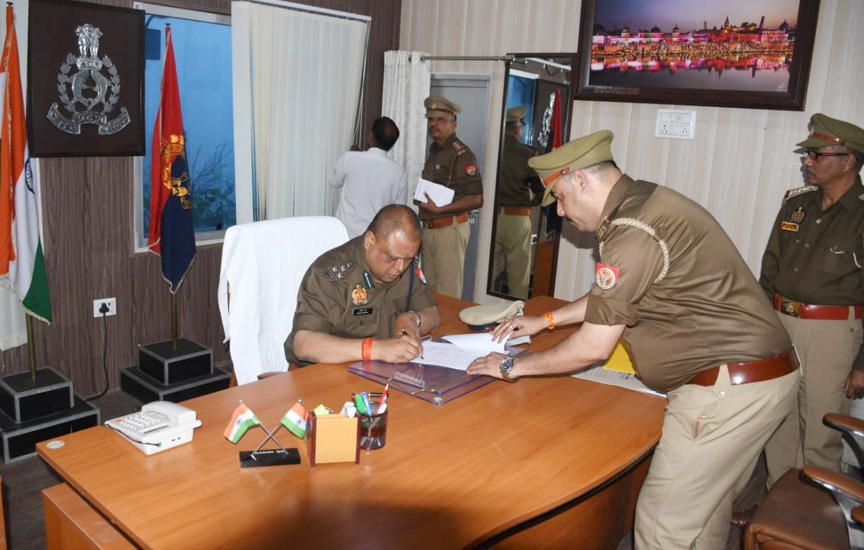 अयोध्या। अपर पुलिस महानिदेशक/पुलिस महानिरीक्षक, अयोध्या परिक्षेत्र प्रवीण कुमार का स्थानान्तरण लखनऊ जोन, लखनऊ हो जाने के उपरान्त नवागन्तुक पुलिस उपमहानिरीक्षक, अयोध्या परिक्षेत्र सोमेन वर्मा द्वारा रविवार को पदभार ग्रहण किया गया। इस अवसर पर परिक्षेत्रीय कार्यालय में नियुक्त समस्त शाखा प्रभारियों को आवश्यक दिशा-निर्देश दिये गये गये।