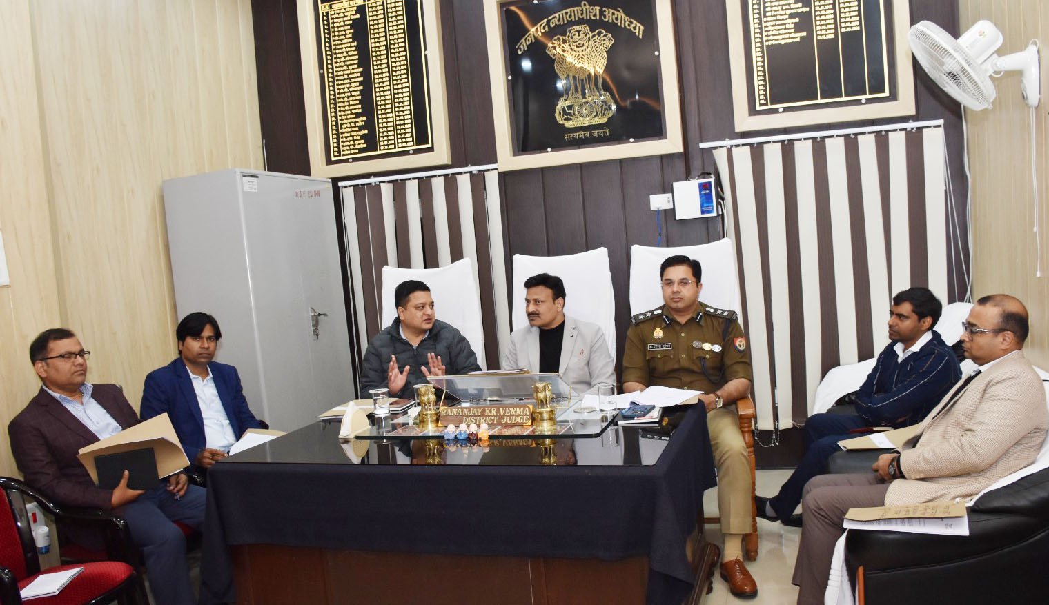 अयोध्या। जनपद न्यायाधीश रणंजय कुमार वर्मा की अध्यक्षता में उत्तर प्रदेश राज्य विधिक सेवा प्राधिकरण द्वारा 22 फरवरी को आयोजित किए जाने वाले मेगा/वृहद विधिक सहायता एवं सेवा शिविर के सफल आयोजन के संबंध में एक महत्वपूर्ण बैठक का आयोजन उनके कक्ष में किया गया, जिसमें जिलाधिकारी निखिल टीकाराम फुंडे, वरिष्ठ पुलिस अधीक्षक डॉ. गौरव ग्रोवर, नगर आयुक्त जयेंद्र कुमार, कुल सचिव डॉ राममनोहर लोहिया अवध विश्वविद्यालय विनय कुमार सिंह सहित जनपद के सभी विभागों के अधिकारी उपस्थित रहे।