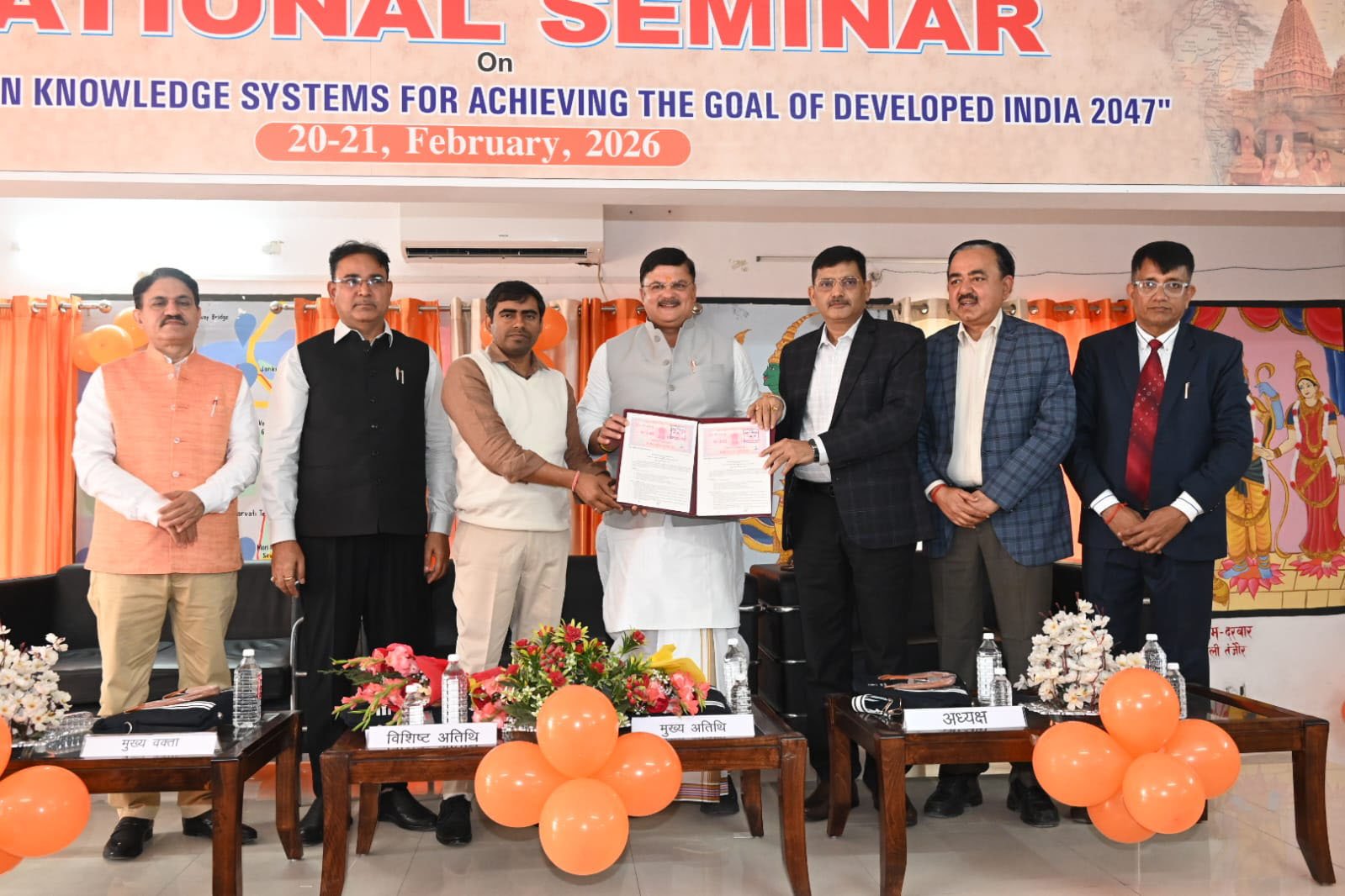 अयोध्या। डॉ. राममनोहर लोहिया अवध विश्वविद्यालय के श्रीराम शोध पीठ सेमिनार हॉल में कुलपति कर्नल बिजेंद्र सिंह के मार्गदर्शन में दो दिवसीय राष्ट्रीय सेमिनार ’रोल ऑफ इंडियन नॉलेज सिस्टम फॉर अचीविंग द गोल ऑफ इंडिया 2047’ का आयोजन पर्यावरण विज्ञान विभाग पर्यावरण विज्ञान विभाग एवं आईसीएसएसआर के संयुक्त तत्वाधान में आयोजित किया गया । कार्यक्रम के मुख्य अतिथि नगर निगम अयोध्या के मेयर गिरीशपति त्रिपाठी एवं विशिष्ट अतिथि गुरु गोविंद सिंह इंद्रप्रस्थ यूनिवर्सिटी नई दिल्ली के प्रो. दुर्गेश त्रिपाठी रहे। मुख्य वक्ता के तौर पर लखनऊ विश्वविद्यालय जियोलॉजी के विभाग अध्यक्ष प्रो. ध्रुव सेन सिंह रहे। उद्घाटन सत्र का शुभारंभ प्रभु श्री रामजी की प्रतिमा पर माल्यार्पण कर दीप प्रज्वलन के साथ किया गया।