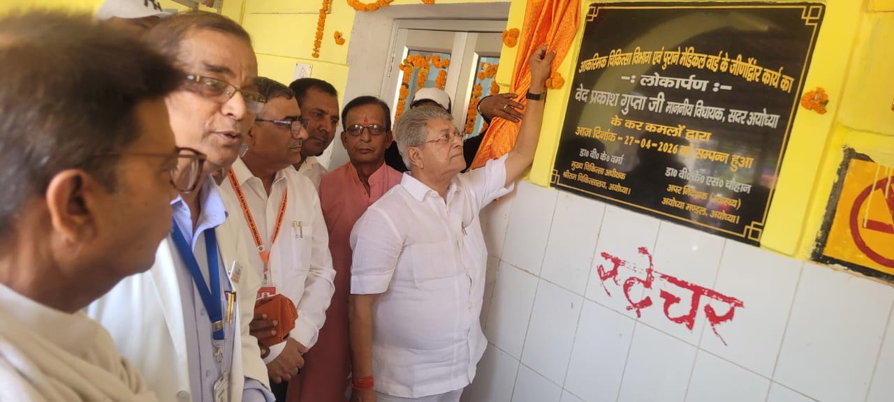 अयोध्या। रामनगरी के प्रमुख स्वास्थ्य संस्थान श्रीराम चिकित्सालय में किए गए व्यापक जीर्णोद्धार कार्यों का लोकार्पण विधायक वेद प्रकाश गुप्ता द्वारा किया गया। इस दौरान उन्होंने चिकित्सालय का निरीक्षण कर व्यवस्थाओं का जायजा लिया तथा भर्ती मरीजों और उनके तीमारदारों से बातचीत कर उपलब्ध सुविधाओं की जानकारी भी ली।