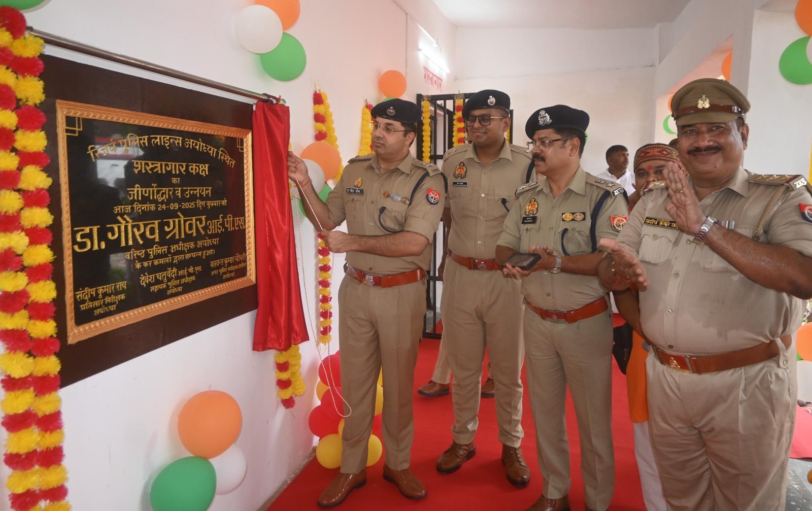 अयोध्या। रिजर्व पुलिस लाइन के शस्त्रागार कक्ष का जीर्णोंद्धार और उन्नयन पूरा होने के बाद बुधवार को एसएसपी ने फीता काट इसको विभाग की सेवा के लिए समर्पित किया। पुलिस आधुनिकीकरण योजना के तहत शासन और डीजी मुख्यालय सुविधाओं और उपकरणों को उन्नत करने की योजना में जुटा हुआ है।