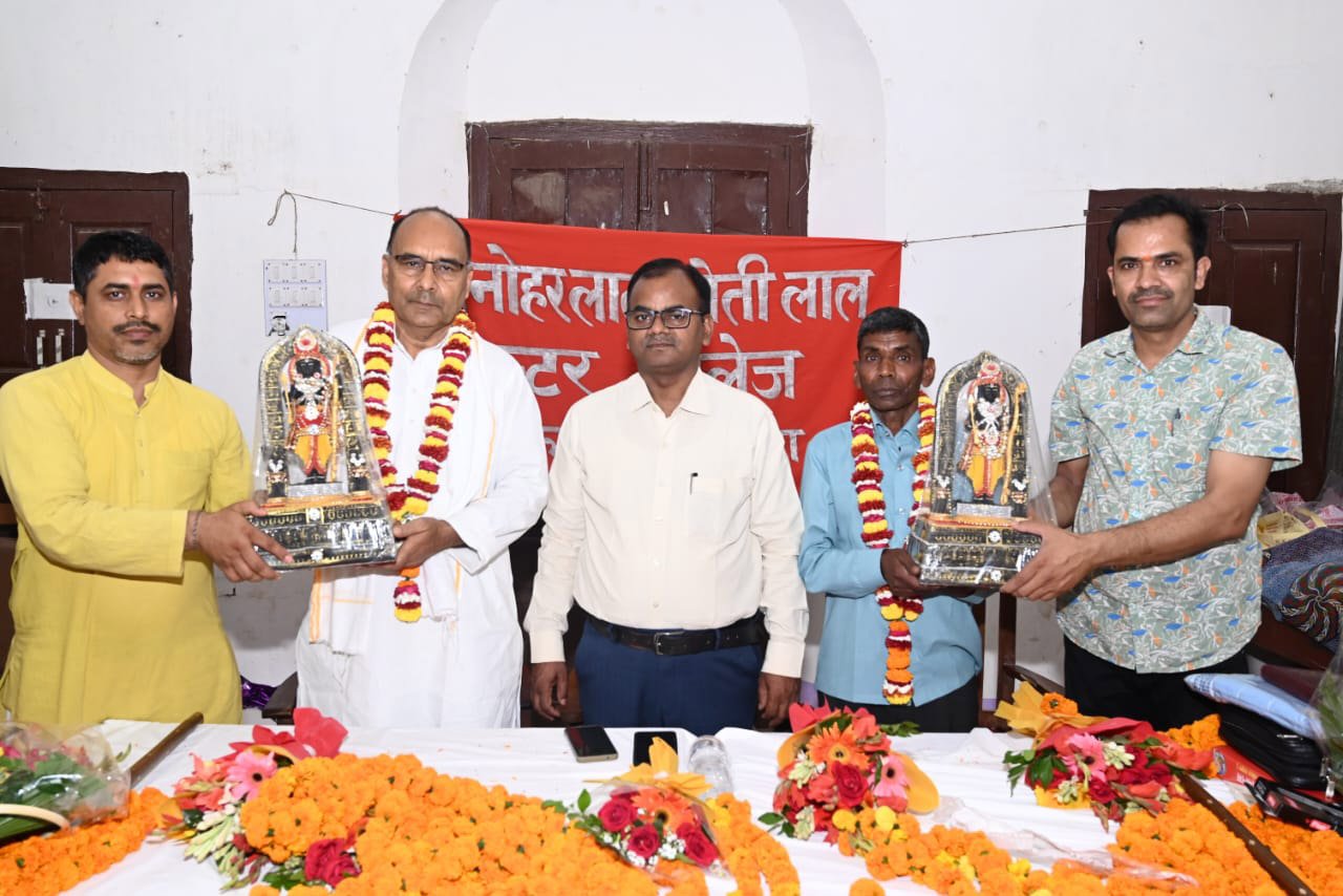 अयोध्या। शहर के प्रतिष्ठित विद्यालय एमएलएमएल इंटर कॉलेज में वरिष्ठ प्रवक्ता दान बहादुर सिंह व दफ्तरी रामभवन की सेवानिवृत्ति पर विदाई सम्मान समारोह का आयोजन भव्यता पूर्वक सम्पन्न हुआ। कार्यक्रम की अध्यक्षता विद्यालय के प्रधानाचार्य जीतेन्द्र कुमार राव एवं संचालन विद्यालय के वरिष्ठ प्रवक्ता आशुतोष प्रकाश सिंह ने किया। इस अवसर पर विद्यालय के शिक्षक एवं शिक्षणेत्तर कर्मचारियों ने अपने-अपने विचार व्यक्त करते हुए सेवानिवृत्ति शिक्षक एवं कर्मचारी द्वय का पुष्प गुच्छ, 11 किलो की माला, अंगवस्त्र, श्रीरामलला की दिव्य प्रतिमा, रामायण, भागवत गीता, उच्च कोटि का ट्राली सूटकेस, रूल इत्यादि भेंटकर स्वागत विदाई सम्मान किया।