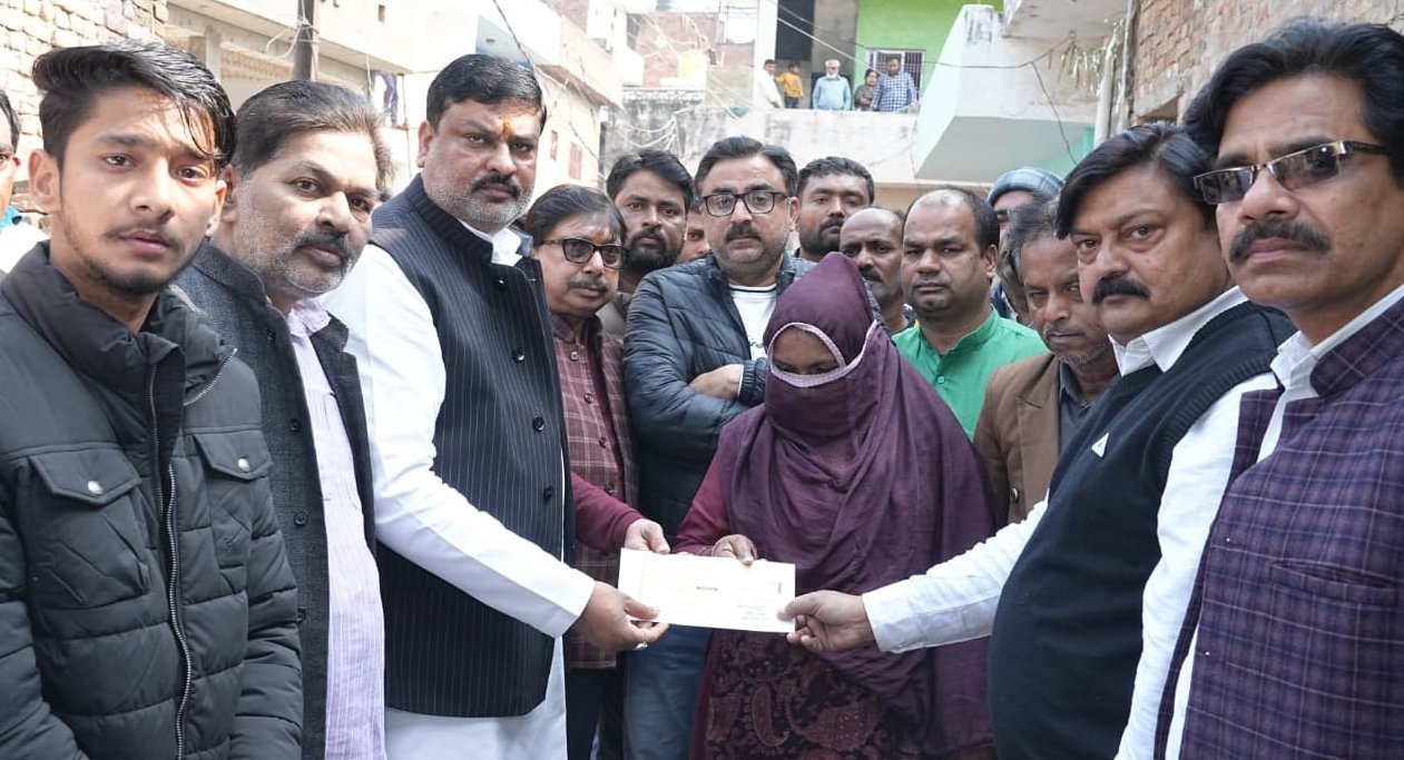 -पूर्व मंत्री तेज नारायण पांडे पवन ने पीड़ित परिवार को सौंपा चेक