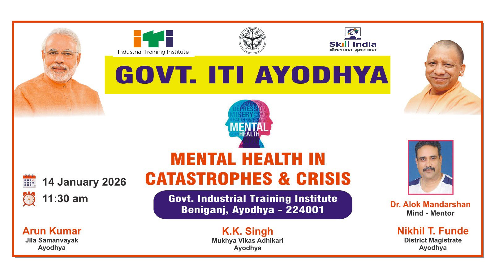 युवाओं में बढ़ रही मनोविकार व आत्मघाती रुझान की व्यवहारिक जागरूकता व प्रबंधन-कौशल प्रशिक्षण हेतु शासन के निर्देशन तथा राजकीय औद्योगिक प्रशिक्षण संस्थान के प्रधानाचार्या तथा स्किल इंडिया मिशन के जिला समन्यवक अरुण कुमार के संयोजन में आयोजित होने वाले इस व्याख्यान-सत्र के मुख्य वक्ता व जिला चिकित्सालय के माइंड- मेंटर डा आलोक मनदर्शन ने बताया कि आयोजन सत्र में क्राइसिस-मैनेजमेंट, इमोशनल-इंटेलिजेंस के साथ वर्क-लाइफ, फैमिली-लाइफ व सोशल-लाइफ अनुकूलन तथा लाइफ-इवेंट स्ट्रेसर से निपटने के टिप्स बताये जायेगें ताकि साइको-पैथालोजी से उत्पन्न मनोद्वंद व तनाव का सकारात्मक प्रबंधन किया जा सके।