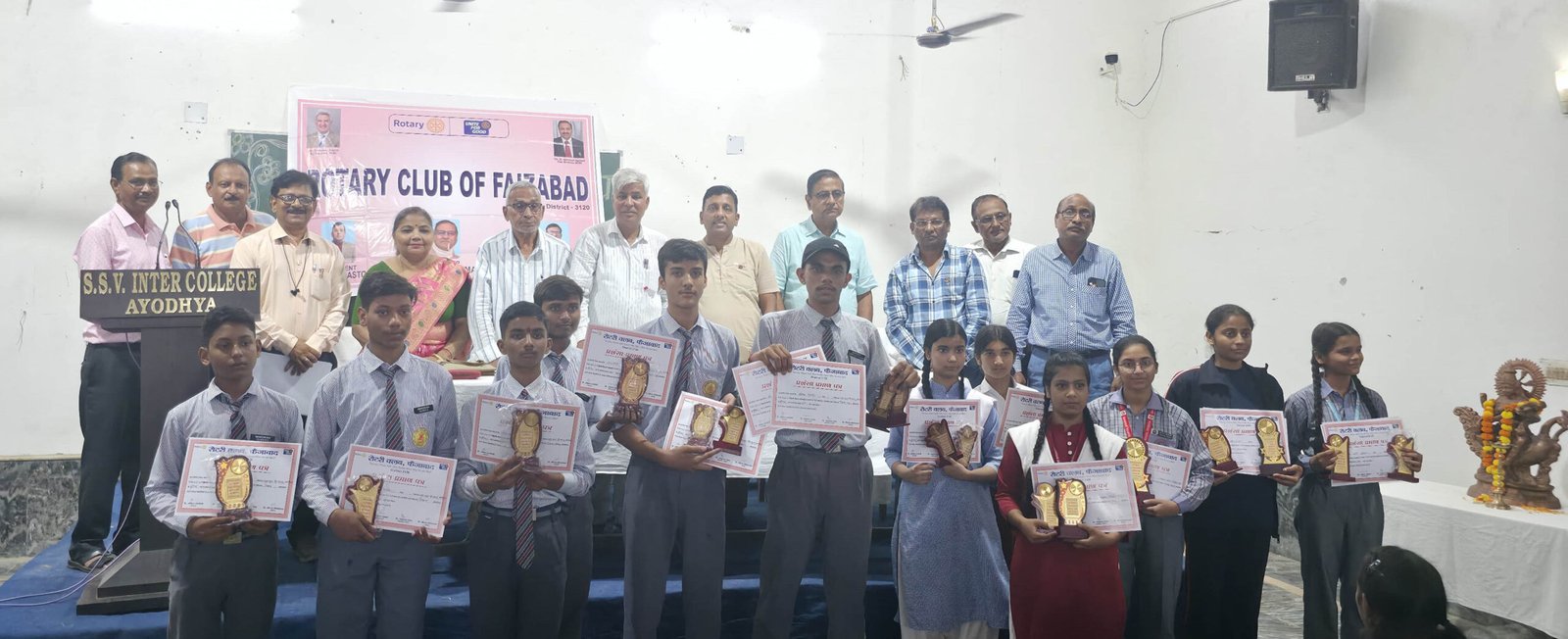 अयोध्या। एसएसवी इंटर कॉलेज में सोमवार को रोटरी क्लब ऑफ फैजाबाद ने विभिन्न प्रतियोगिताओं के सफल मेधावियों को सम्मानित किया। सीनियर वर्ग में “क्या ऑनलाइन शिक्षा पारंपरिक शिक्षा से बेहतर है“ विषय पर जबकि जूनियर वर्ग में “बुजुर्गों की देखभाल और सम्मान“ विषय पर प्रतियोगिता आयोजित हुई।
