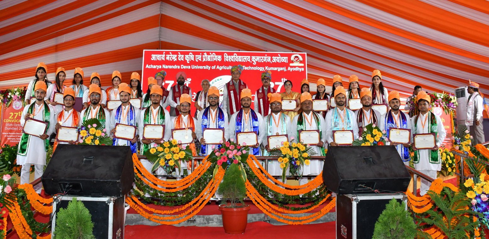 आचार्य नरेंद्र देव कृषि एवं प्रौद्योगिक विश्वविद्यालय में 27वें दीक्षांत समारोह के अवसर पर 735 छात्र-छात्राओं को उपाधियां व 28 मेधावियों को स्वर्ण पदक दिया गया। प्रदेश की कुलाधिपति आनंदी बेन पटेल के हाथों स्वर्ण पदक पाकर सभी मेधावी खुशी से झूम उठे। पदक पाने के बाद छात्र-छात्राएं सेल्फी लेते नजर आए तो कोई पदक को चूमता हुआ नजर आया। सभी छात्र-छात्राओं ने एक दूसरे को बधाईयां दीं और अपने गुरुजनों का आशीर्वाद लिया। कुलाधिपति स्वर्ण पदक सात, कुलपति स्वर्ण पदक 13 तथा विश्वविद्यालय स्वर्ण पदक आठ मेधावियों को दिया गया।