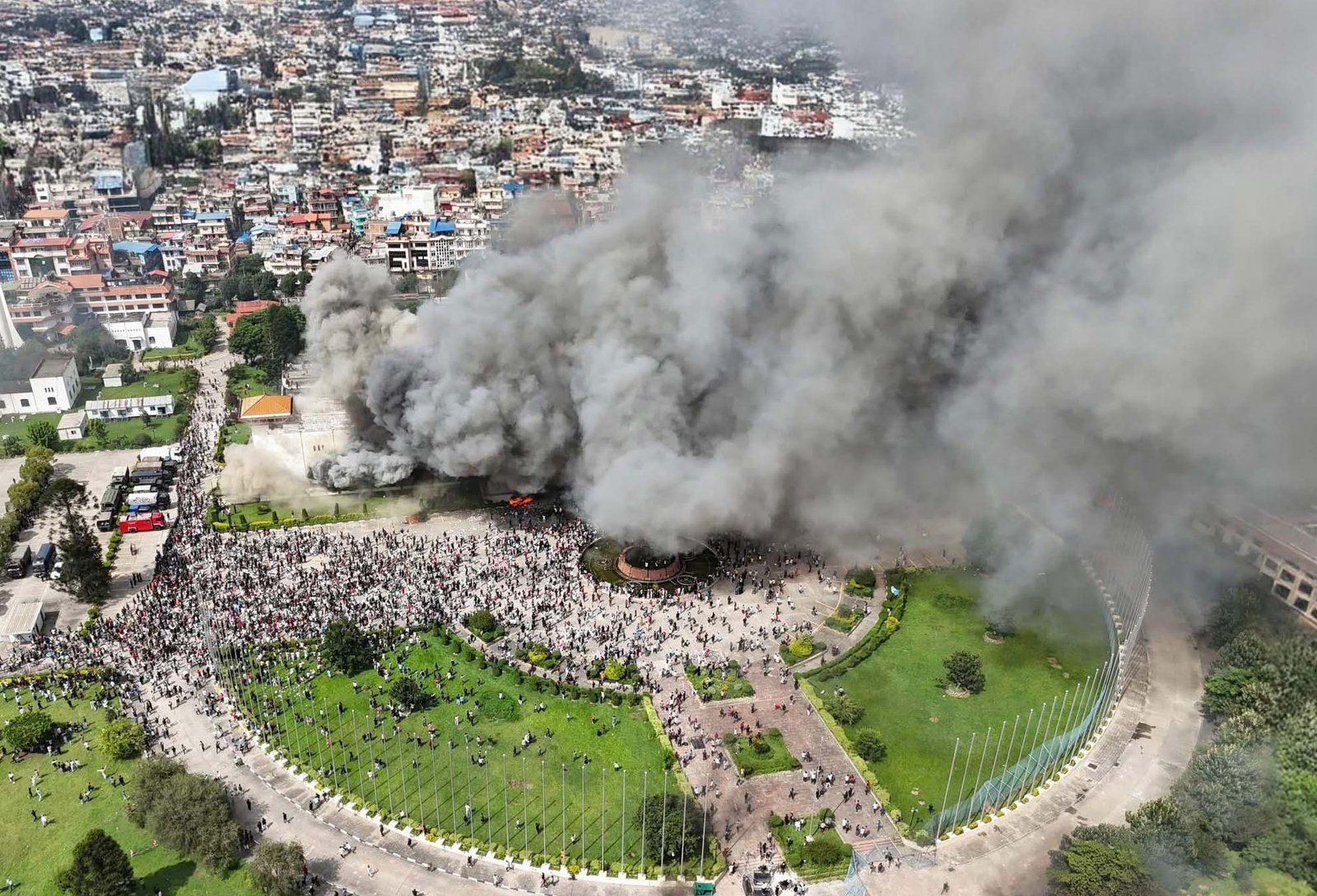 प्रदर्शनकारियों ने संसद भवन को आग के हवाले किया