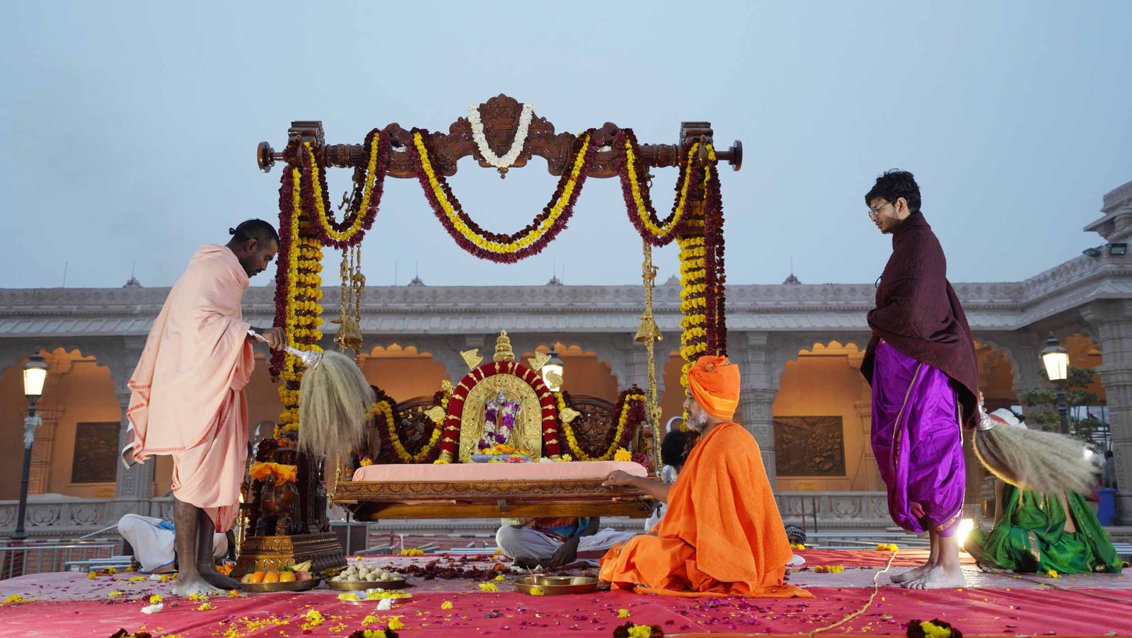 पालकी यात्रा के दौरान श्रद्धालुओं ने जय श्रीराम के उद्घोष के साथ प्रभु श्रीराम के दर्शन किए। दीपों और पुष्पवर्षा से वातावरण भक्तिमय हो गया। पांच दिनों तक चलने वाला यह पावन अनुष्ठान विद्वान वैदिक आचार्यों द्वारा संपन्न कराया जा रहा है। संपूर्ण आयोजन का मार्गदर्शन श्रीराम जन्मभूमि तीर्थ क्षेत्र ट्रस्ट के ट्रस्टी जगद्गुरु मध्वाचार्य जी द्वारा किया जा रहा है।