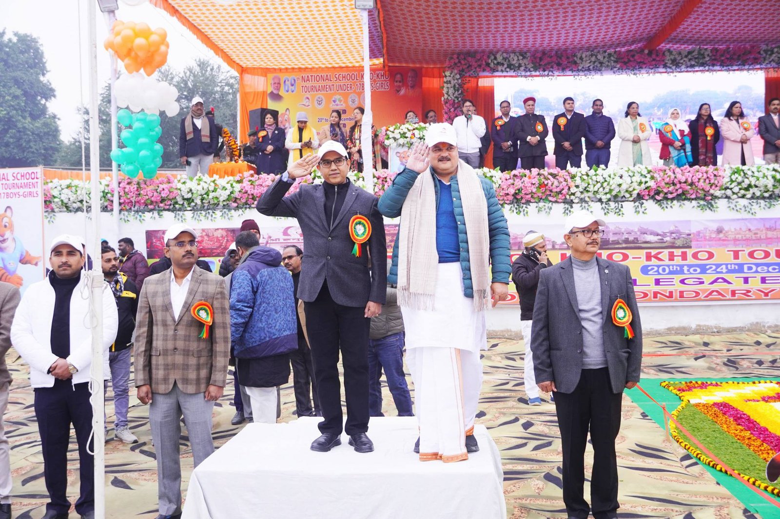 अयोध्या। राजकीय इंटर कॉलेज के मैदान पर मिनी भारत की झलक दिखाई दी राष्ट्रीय विद्यालय खो-खो प्रतियोगिता के उद्घाटन अवसर पर देशभर के 1100 खिलाड़ी अपना दम दिखाने के लिए एक साथ मैदान में स्कूल गेम फेडरेशन ऑफ इंडिया के महाकुंभ में खिलाड़ियों का जोश दिखाई दिया। प्रतियोगिता का उद्घाटन मण्डलायुक्त राजेश कुमार और महापौर गिरीश पति त्रिपाठी ने झंडारोहण के साथ किया।