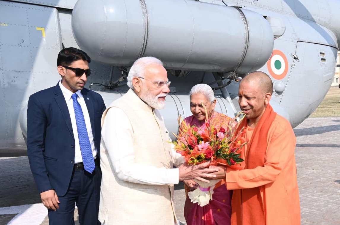 -राज्यपाल आनंदी बेन पटेल व मुख्यमंत्री योगी आदित्यनाथ ने साकेत हैलीपेड पर किया प्रधानमंत्री का स्वागत