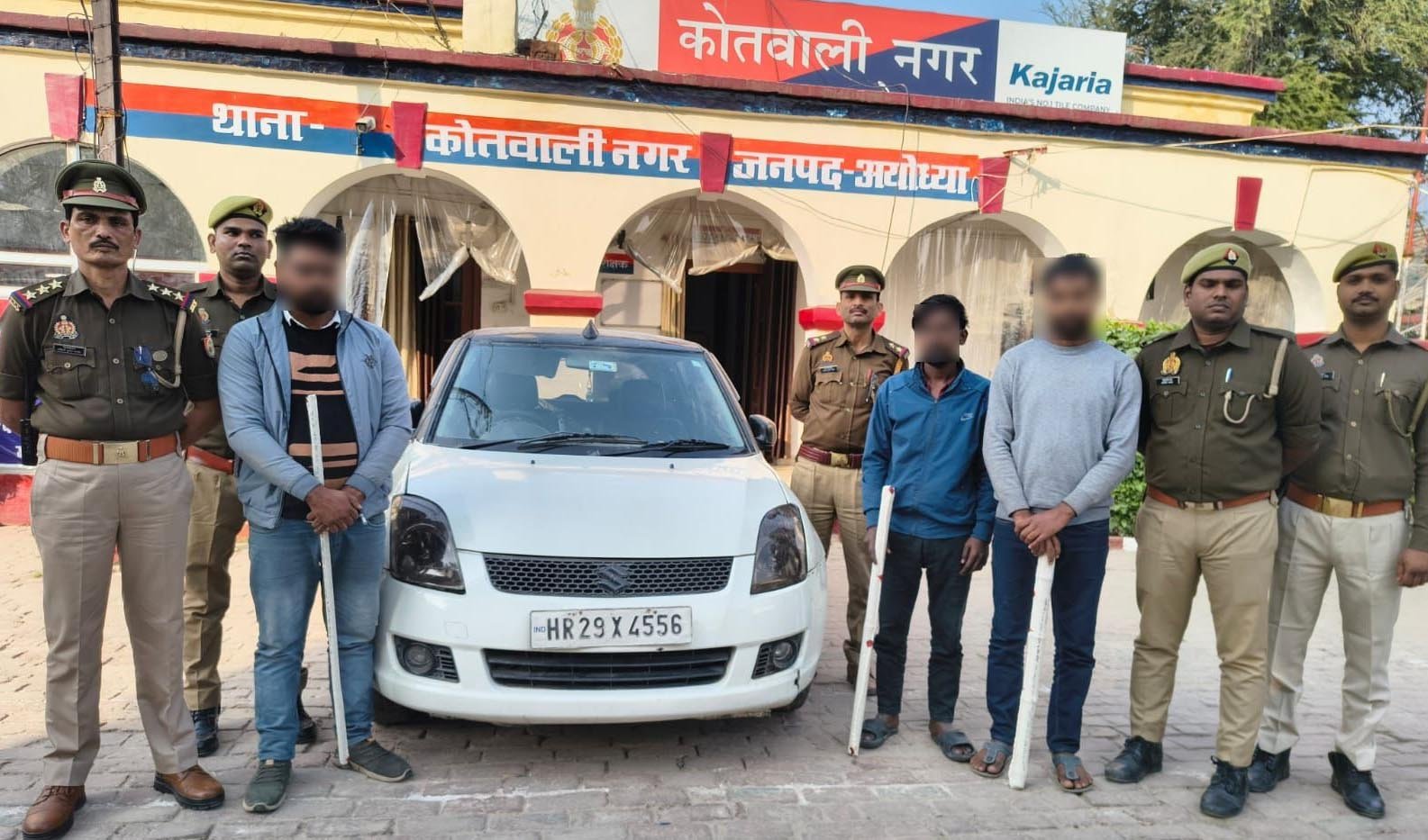 अयोध्या। नगर कोतवाली पुलिस ने पांच दिन पूर्व जप्ती वजीरगंज क्षेत्र में पत्रकार पर हुए प्राणघातक हमले के मामले में तीन आरोपियों को गिरफ्तार किया है। पकड़े गए युवकों के पास से वारदात में प्रयुक्त कार और लोहे का रॉड व डंडा बरामद किया है।