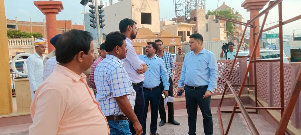 न्होंने लाइटिंग व्यवस्था, कुंड का पानी, साफ सफाई तथा पत्थरों की फिनिशिंग आदि का निरीक्षण किया। इसी क्रम में अयोध्या सरयू आरती स्थल का भी निरीक्षण किया तथा संबंधित अधिकारियों को आवश्यक दिशा निर्देश दिए। निरीक्षण के दौरान अपर जिलाधिकारी नगर, पुलिस अधीक्षक नगर, उपजिलाधिकारी रुदौली, क्षेत्राधिकारी अयोध्या सहित सम्बंधित कायदायी संस्था के अधिकारीगण उपस्थित रहे।