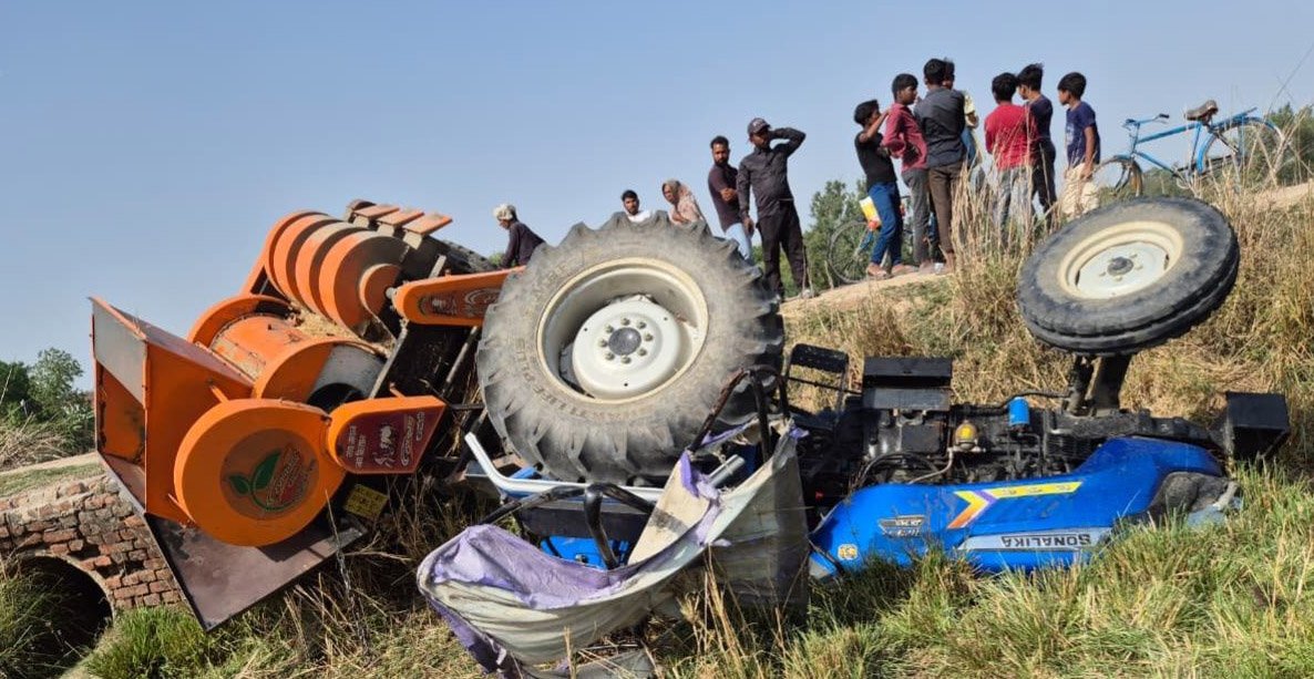 -गेहूं की मड़ाई करने के बाद ट्रैक्टर से घर वापस लौट रहा था युवक